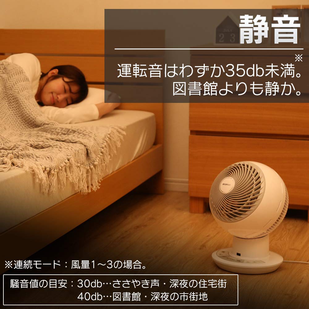 静音性も高く、35db未満なので音も気になりません。強制撹拌モードは、MAX送風と空気循環をするのにピッタリな角度を自動調節するので便利です。操作は付属のリモコンで行うことができます。タイマー機能も付いているので、使いやすさも抜群ですよ。