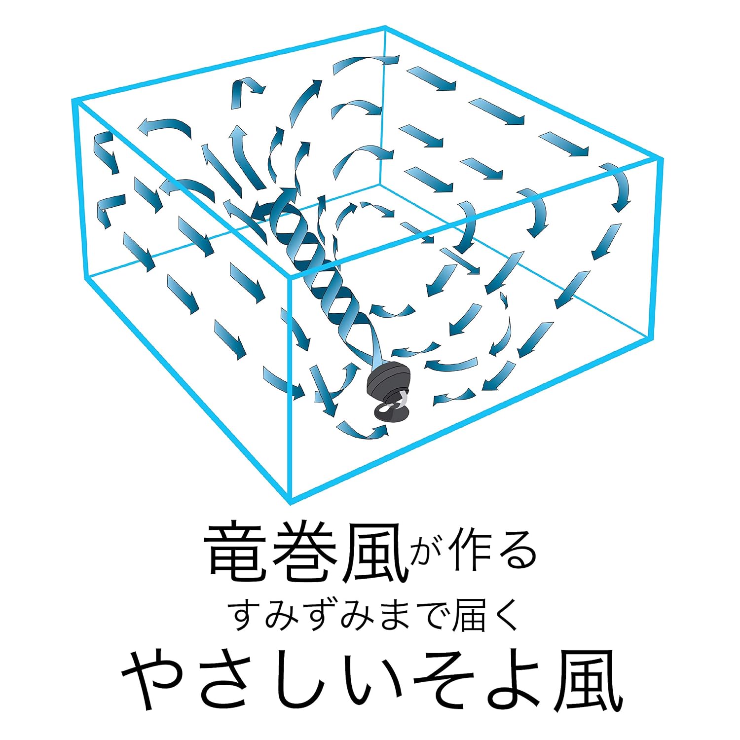 25m先まで届く竜巻状の風は、パワフルさを感じることができます。部屋の広さが広くなると、空気は上手く循環されにくくなります。そこで敢えて、首振り機能は付けずに空気を撹拌する選択をしたこちらの商品。カバーの取り外しもしやすく掃除もしやすいです。